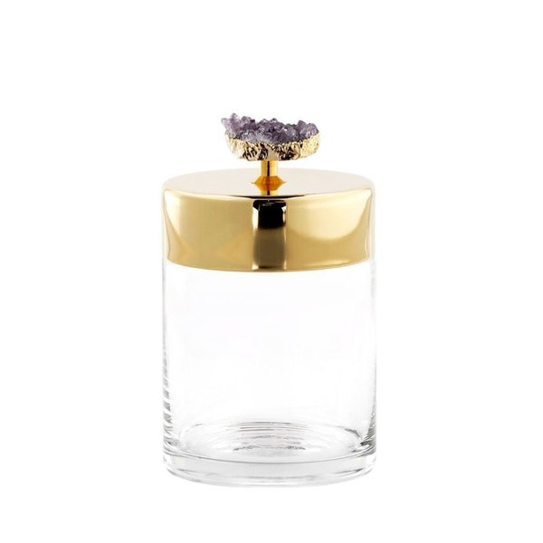 Caixa Decorativa Alta Inox Com Pedra Ametista
