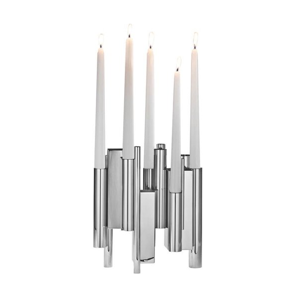 Design Antonio de Marco + Simone Fanciullacci. Os castiçais Manhattan nascem com o propósito de mobiliar o espaço doméstico de uma forma icônica e surpreendente: um objeto que fala independentemente da presença de velas sobre ele. Os diferentes tamanhos e alturas dos tubos metálicos, o seu projeto escalonado de um andar para o outro e também o seu acabamento espelhado remetem a um pequeno horizonte com grandes arranha-céus de metal e vidro, assim como os de Nova York.
