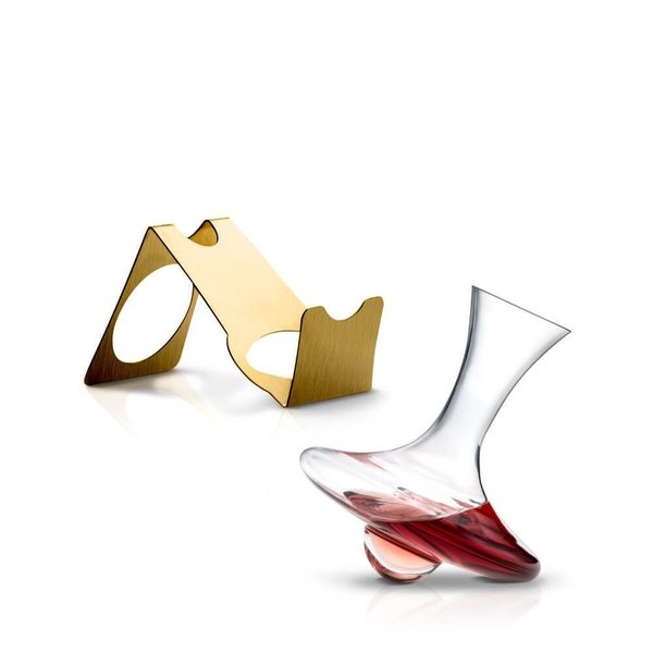 O decanter Noé vem acompanhado de um suporte e secador, que permitem a fácil limpeza e armazenagem.