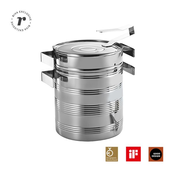 Com formas surpreendentes e linhas fascinantes, a Angiolina não é simplesmente uma espagueteira, mas um conto, uma história iniciada durante a segunda guerra mundial e que está hoje ligada ao novo mundo, no Brasil: “nossa nonna cozinhava a pasta dentro da lata de molho...”. Parecia uma história inacreditável, mas foi o que os irmãos Adriano contaram a Rubens Simões, designer e diretor criativo da Riva. “É verdade! durante a guerra, nonna Angiolina pegava uma lata de molho, e ao invés de colocá-la na panela, a usava para cozinhar a massa!”. Quando Rubens escutou esta história, teve uma brilhante ideia: “Vamos fazer essa panela!” Assim nasceu a angiolina, a espagueteira capaz de transformar uma história em uma experiência de design, por ser essa sua natureza, a espagueteira produzida pela Riva foi premiada com o iF Design Award, Good Design e Designpreis.