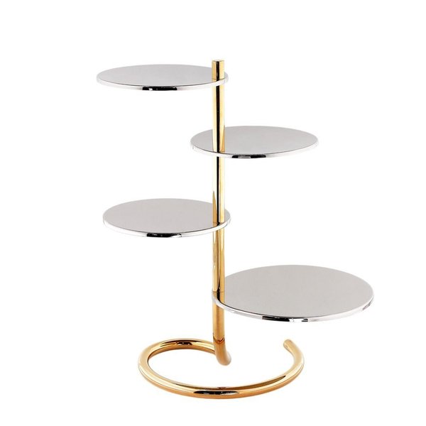 Com sua base em espiral e discos que parecem flutuar, a Rondelli eleva doces e salgados a pequenos cenários de luz. Um objeto onde o design encontra o prazer de servir.